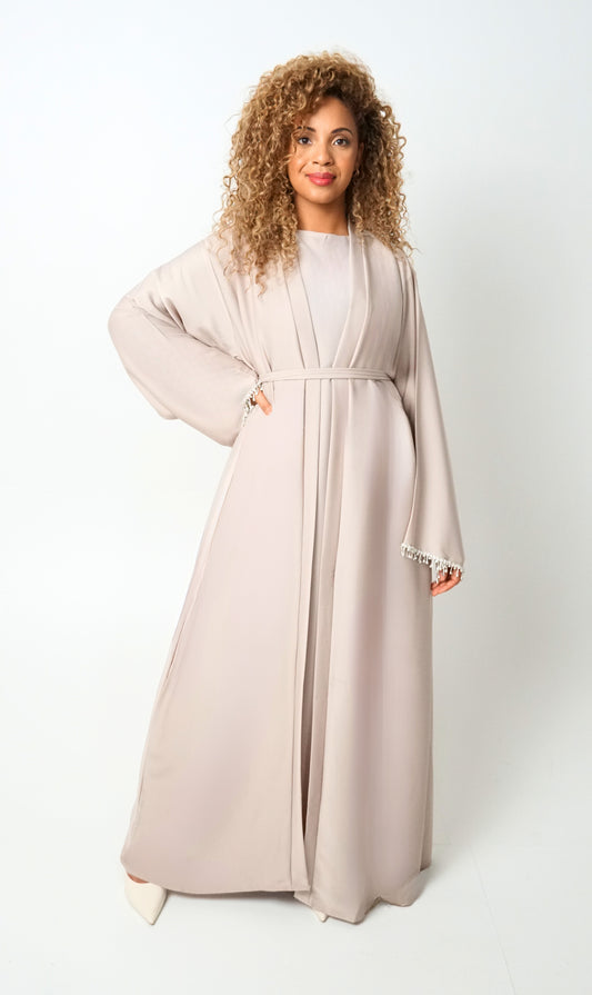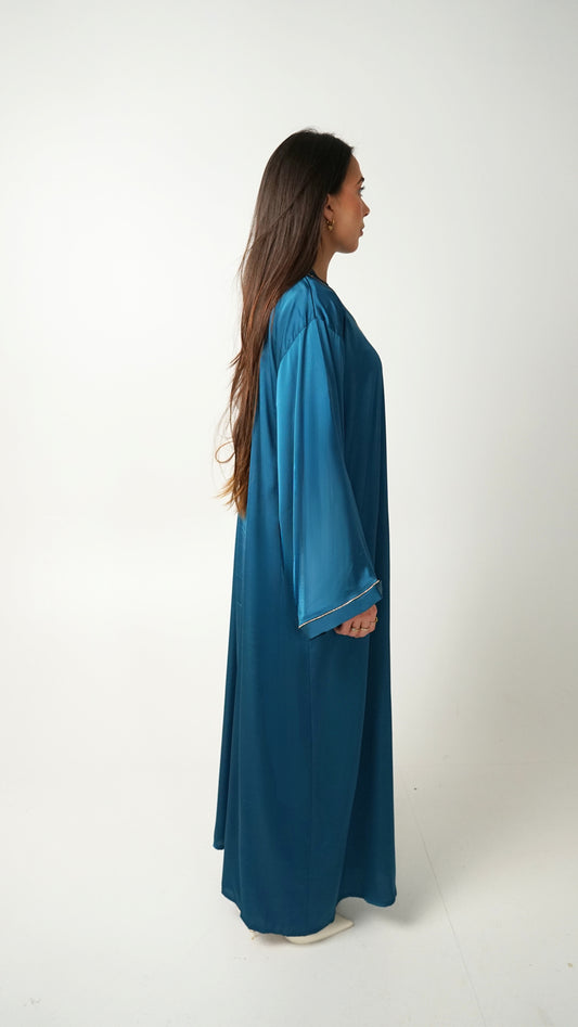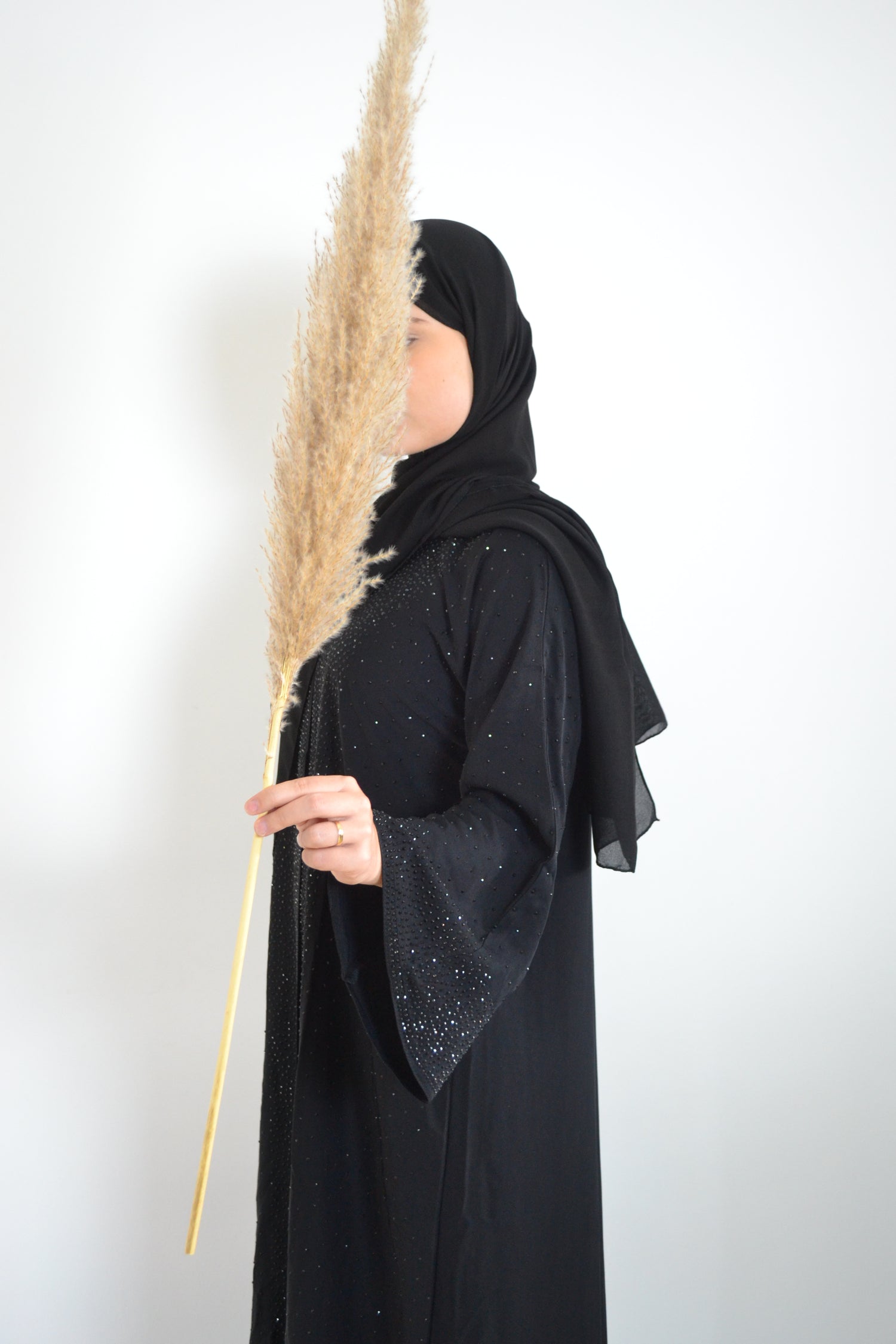 Ontdek de ingetogen elegantie met onze Abaya Yasmine, uit onze Black Collection met sprankelende steentjes. Deze abaya heeft 4 druksluitingen verdeeld over de middenzoom, waardoor je de mogelijkheid hebt om hem zowel open als gesloten te dragen.